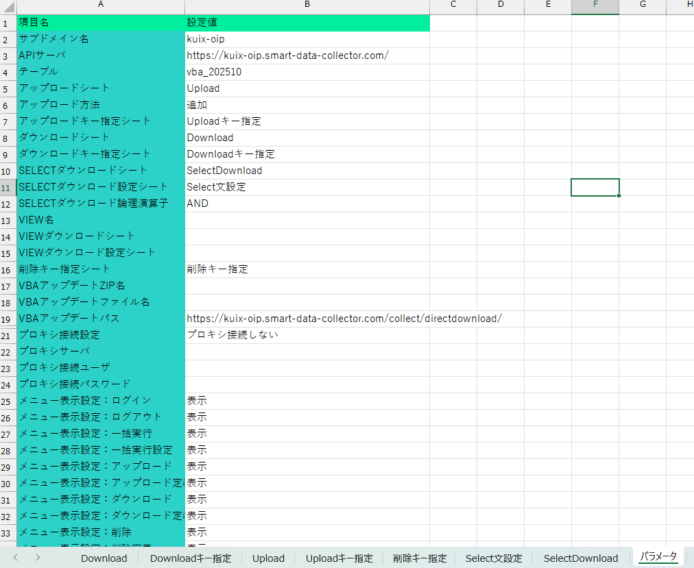 | SELECTダウンロードシート | SELECTダウンロードに使用するシート名を入力します。 |