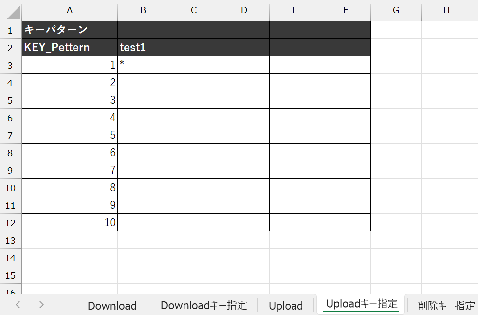 | アップロードキー指定シート | アップロードキー指定に使用するシート名を入力します。 |