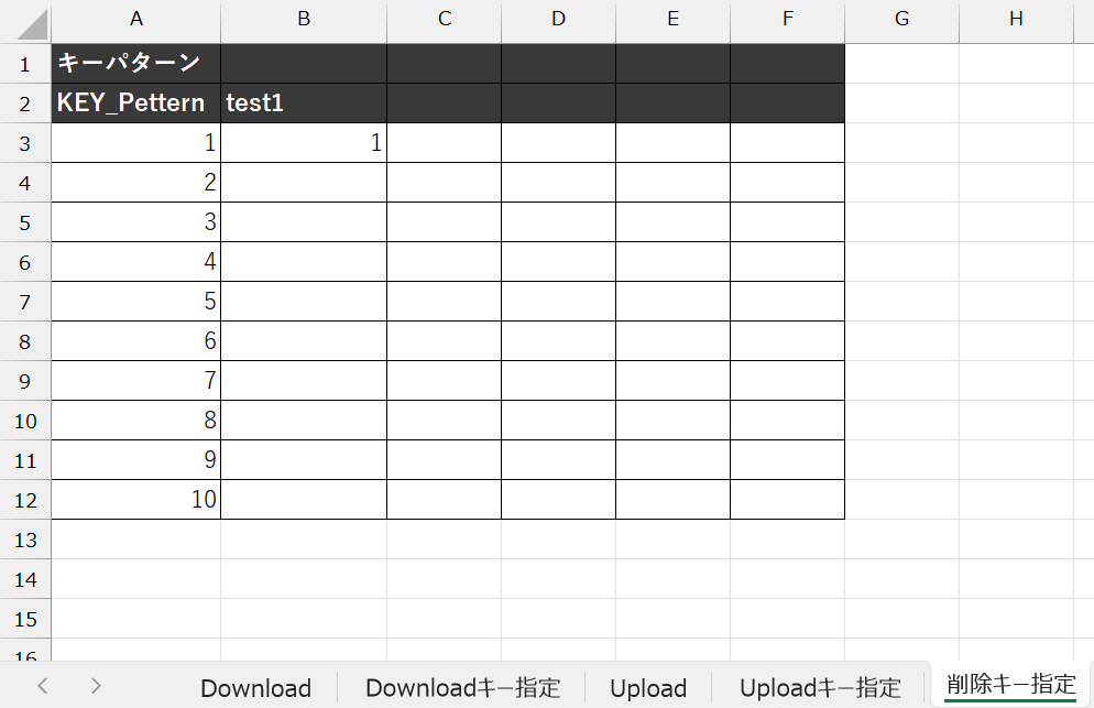 「Uploadキー指定」「Downloadキー指定」「削除キー指定」シートを利用することでアップロード/ダウンロード/削除を行う対象データを制限することができます。